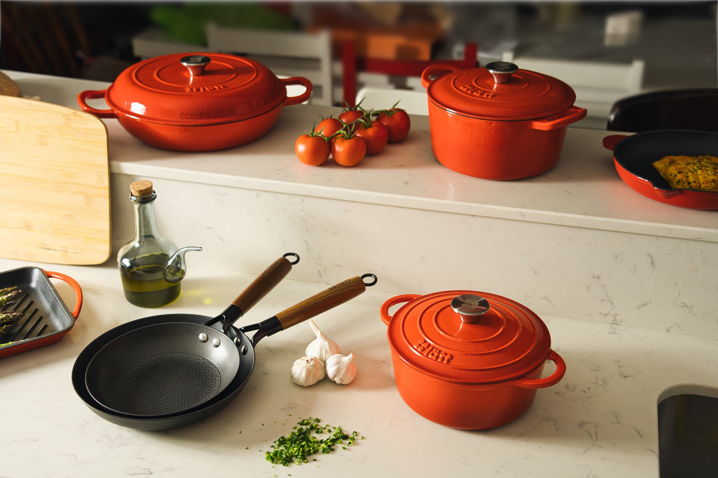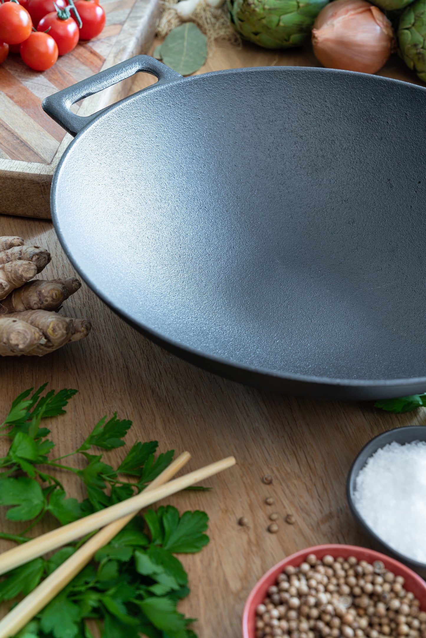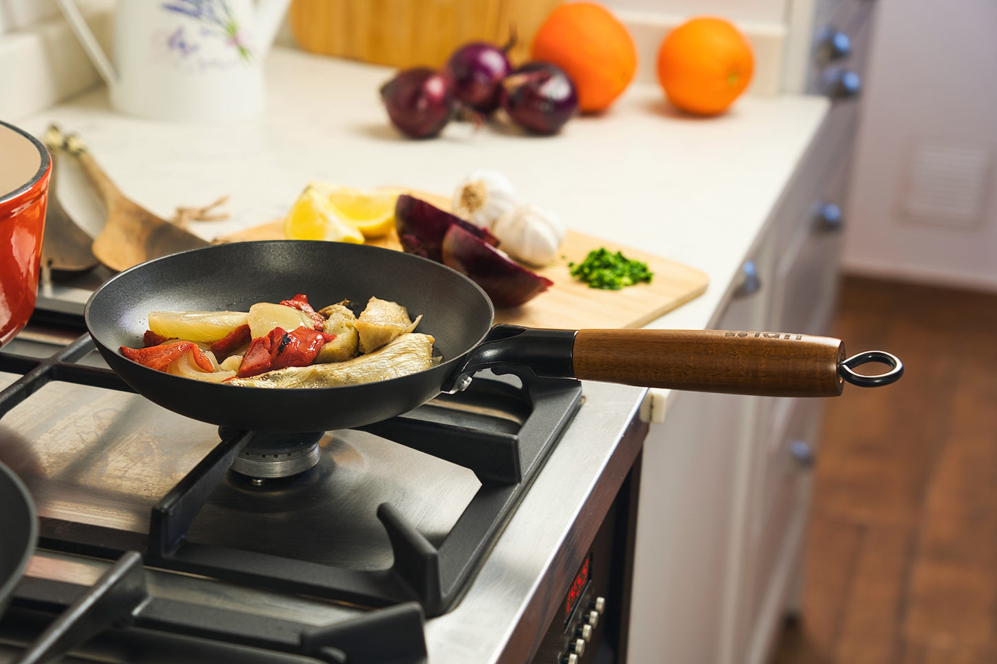 Set de 2 Sartenes antiadherentes de hierro fundido con mango de madera Acacia 24/28cm