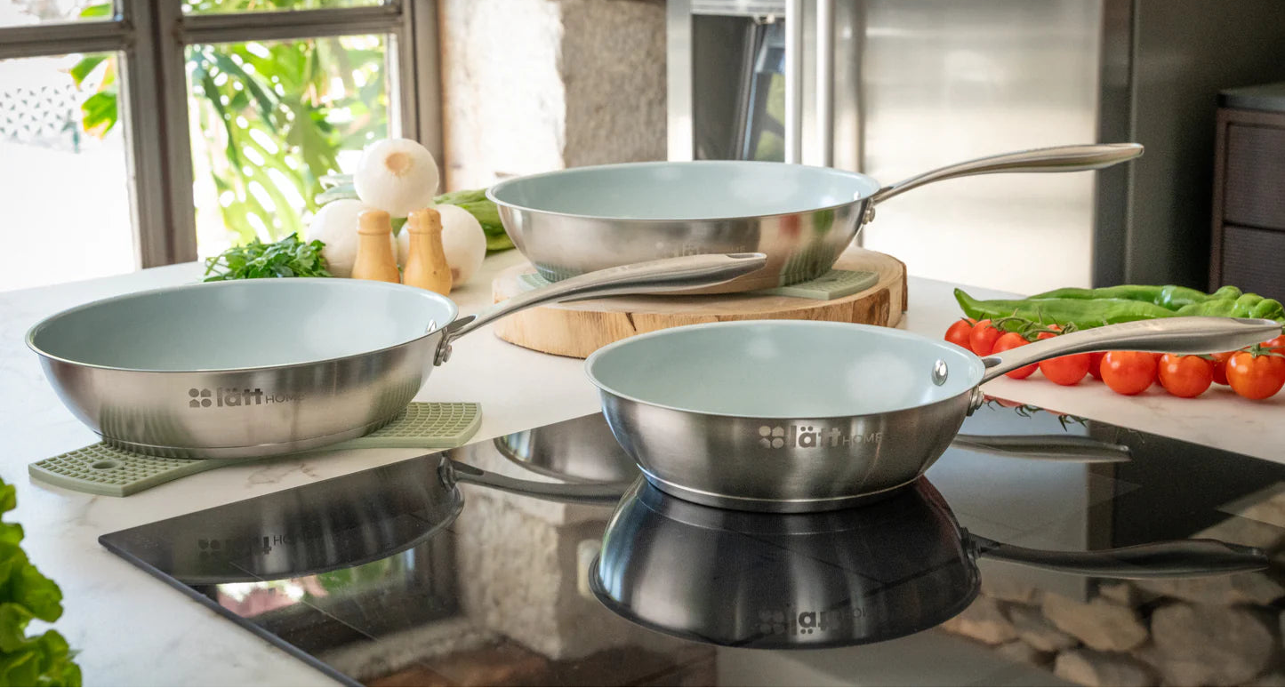 La sartén Vita de acero inoxidable de Lätt Home es una pieza robusta y elegante que combina durabilidad, funcionalidad y diseño minimalista.