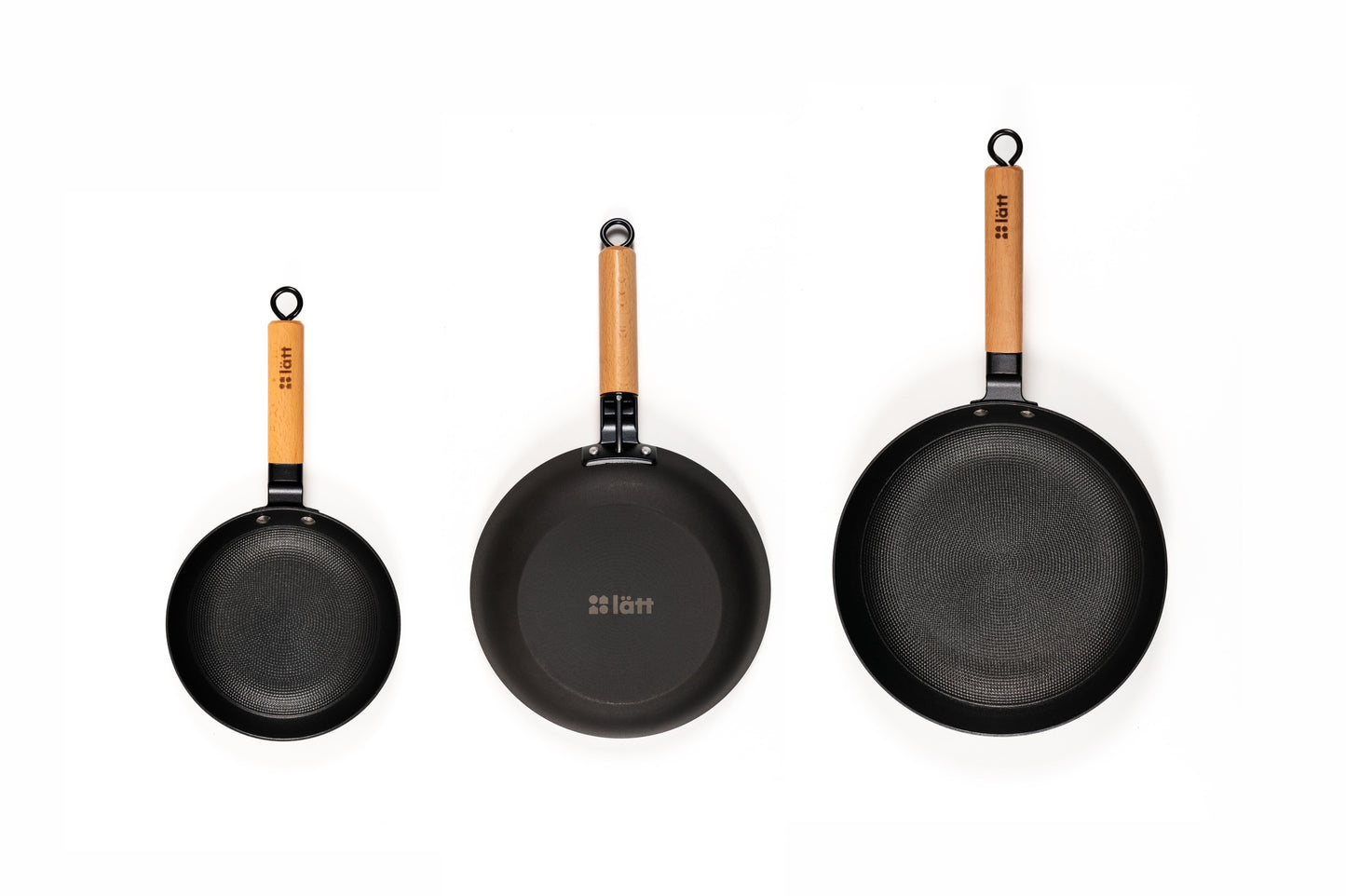 Set de 3 Sartenes antiadherentes de hierro fundido con mango de madera Haya 20/24/28cm
