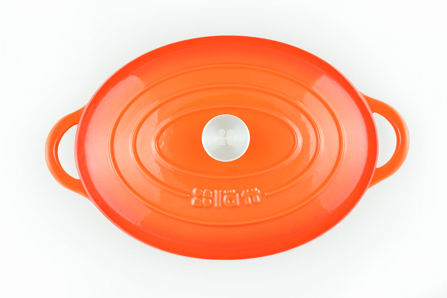 Lätt Home Cocotte Hierro Fundido Esmaltado Naranja. Cocotte Ovalada 33x11 CM - 6 L. Olla Elegante, Resistente, Especial para Inducción y Apta para todos tipo de Cocina
