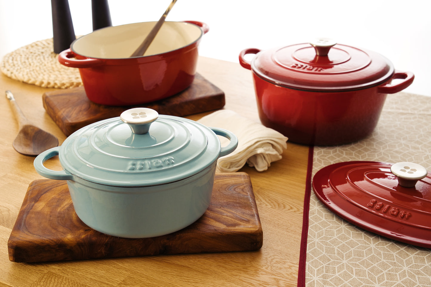 DISEÑO ELEGANTE: Esmaltado exterior rojo e interior blanco para dar un toque de estilo y funcionalidad, permite utilizarla también como elemento decorativo en la mesa.