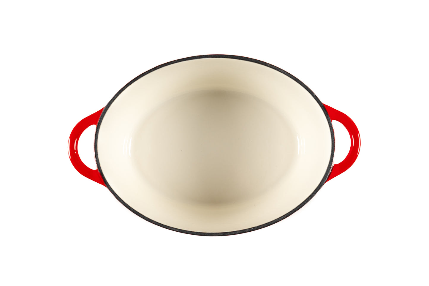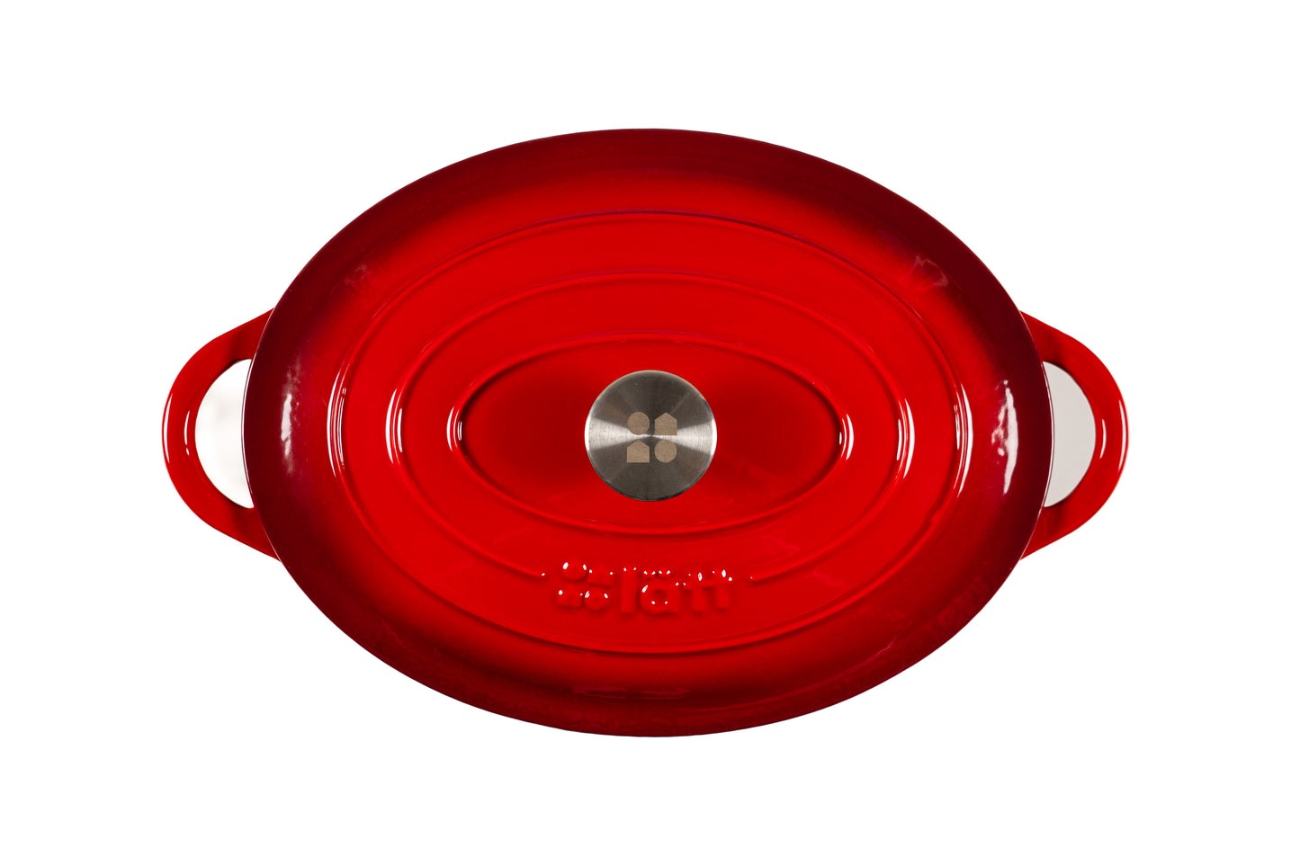 Lätt Home Cocotte Hierro Fundido Esmaltado Roja. Cocotte Ovalada 33x11 CM - 6 L. Olla Elegante, Resistente, Especial para Inducción y Apta para todos tipo de Cocina