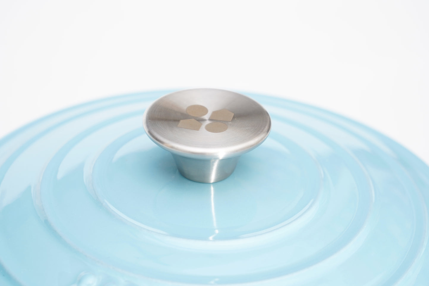 El pomo de acero inoxidable, además de ser elegante, es resistente al calor, lo que te permite manipular la cocotte con seguridad y facilidad en todo momento.