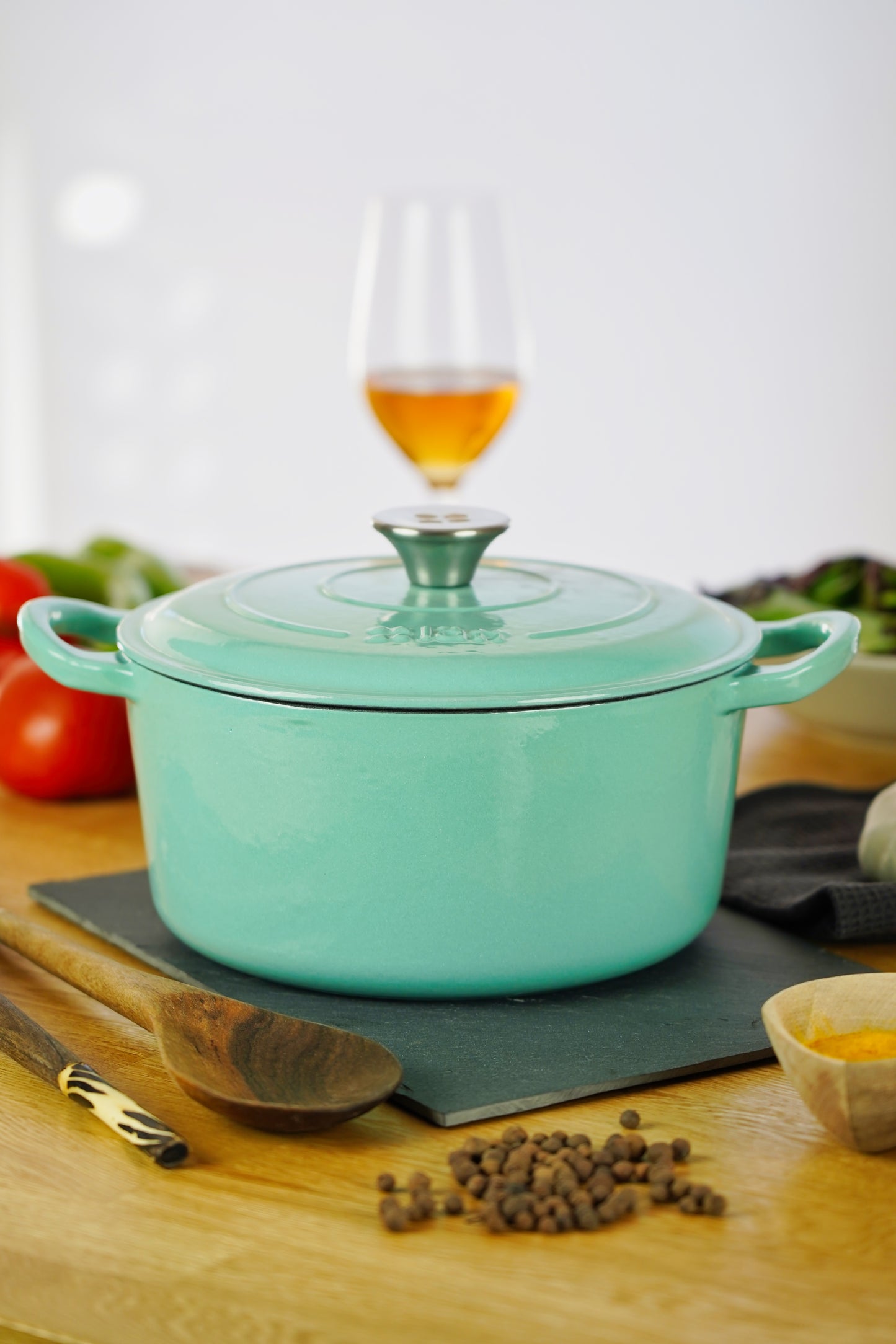 Lätt Home Cocotte Hierro Fundido Esmaltado Verde Menta. Cocotte Redonda 23x11 CM - 4 L. Olla Elegante, Resistente, Especial para Inducción y Apta para todos tipo de Cocina