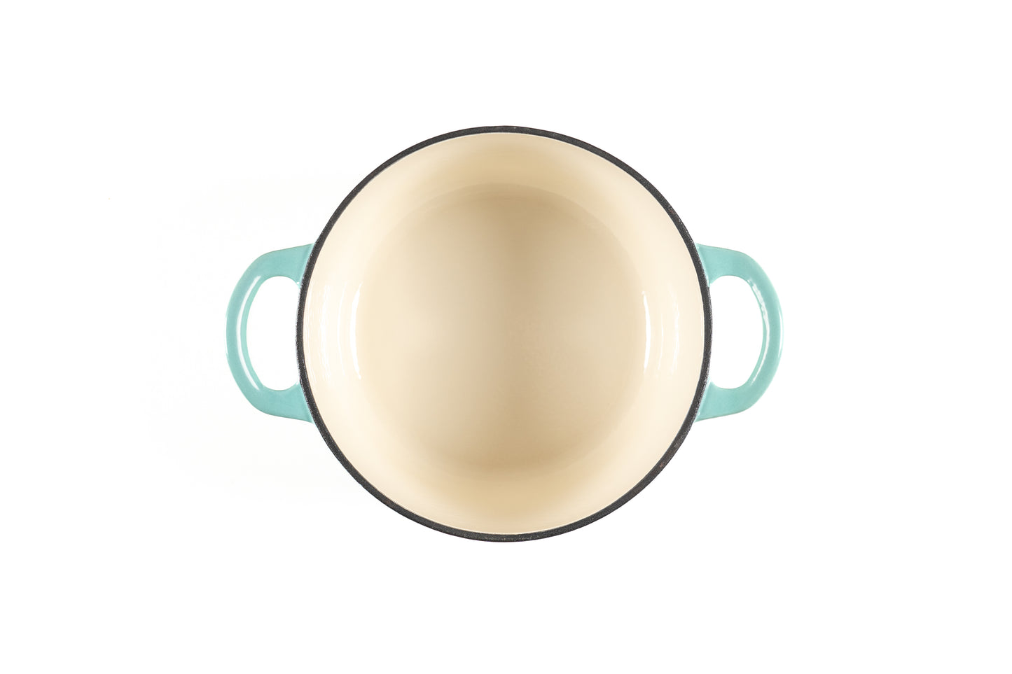 DISEÑO ELEGANTE: Esmaltado exterior verde menta e interior blanco para dar un toque de estilo y funcionalidad, permite utilizarla también como elemento decorativo en la mesa.