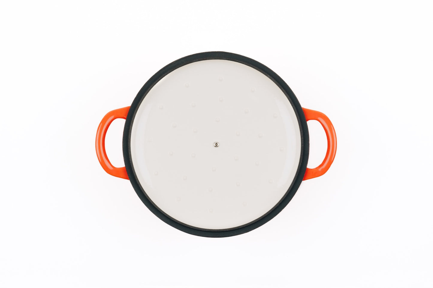 DISEÑO ELEGANTE: Esmaltado exterior naranja e interior blanco para dar un toque de estilo y funcionalidad, permite utilizarla también como elemento decorativo en la mesa.