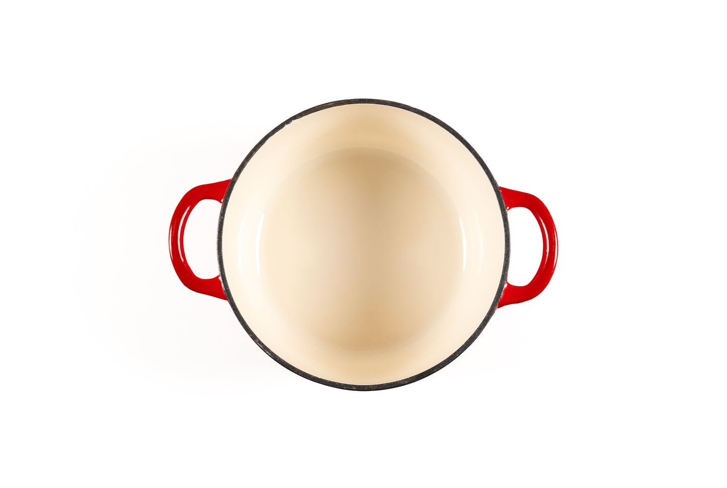 DISEÑO ELEGANTE: Esmaltado exterior rojo e interior blanco para dar un toque de estilo y funcionalidad, permite utilizarla también como elemento decorativo en la mesa.
