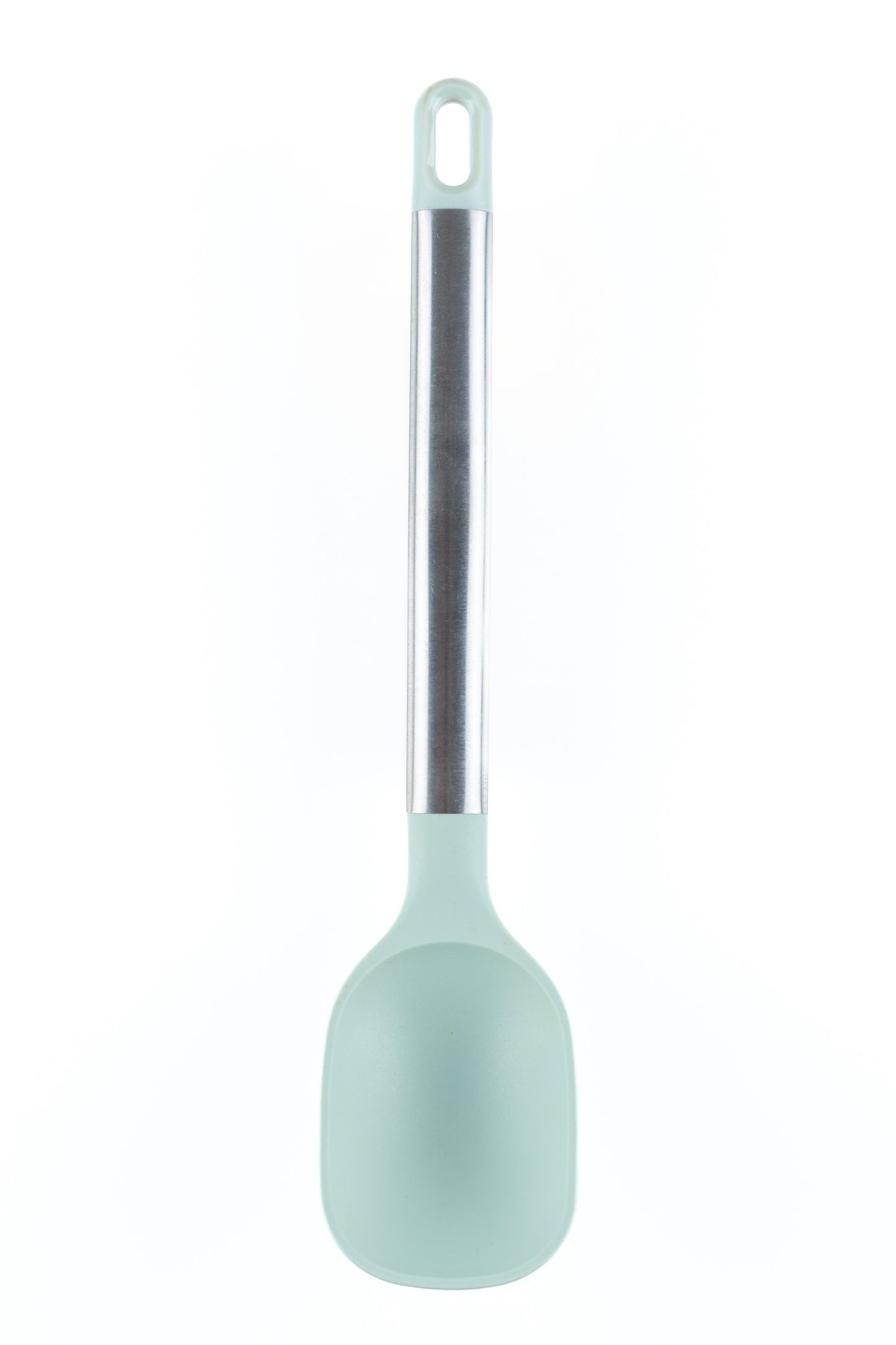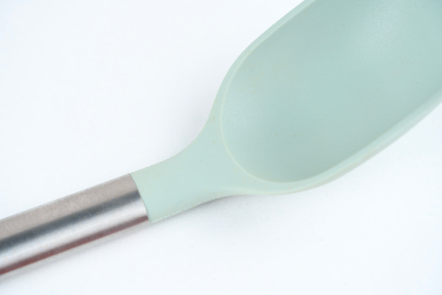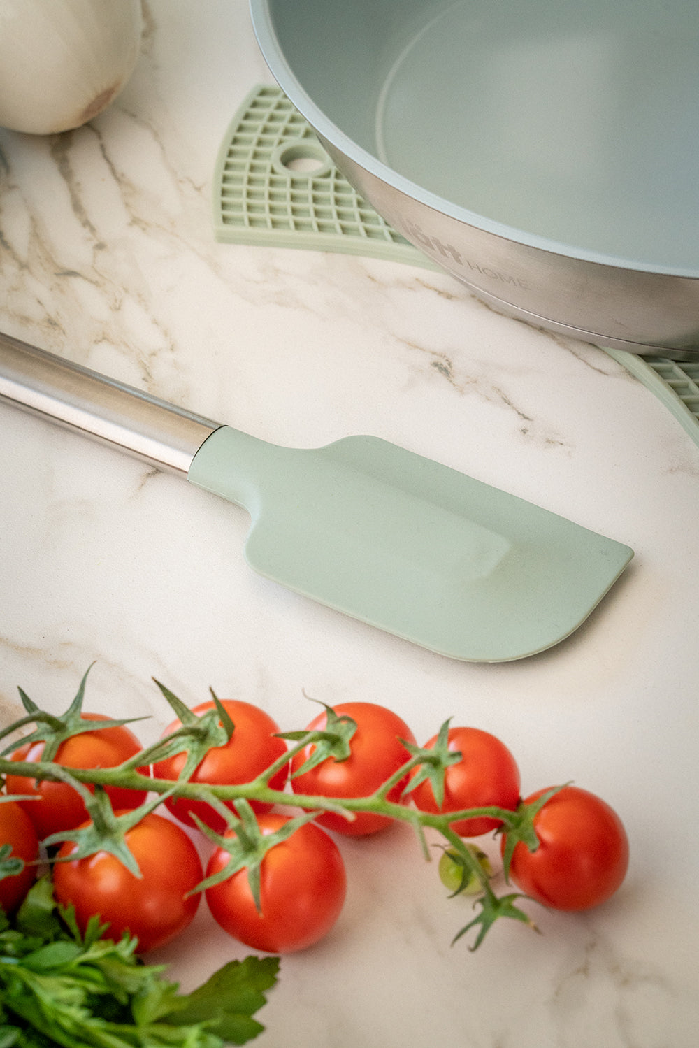 MEZCLA SUAVEMENTE: Flexible y silenciosa, esta espátula se mueve al compás de tus recetas. Perfecta para mezclar, recoger o extender, se adapta a cualquier recipiente sin dejar restos ni dañar el antiadherente. Es esa herramienta sutil que convierte una preparación sencilla en una experiencia cuidada.